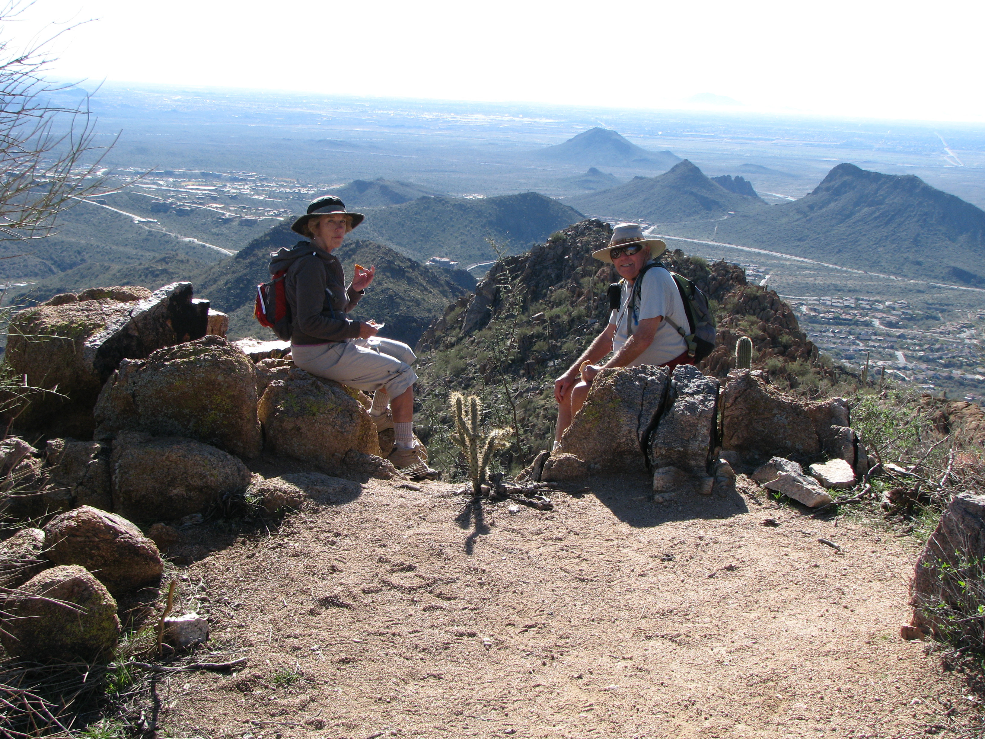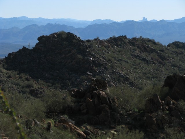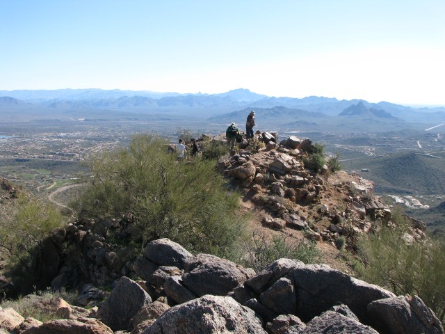 Today (Friday the 13th) we did a route new to our group, a hike to the summit of Sunrise Peak. This peak is located in northeast Scottsdale in the city-owned “Sonoran Preserve”. The “hikingaz” website lists the accumulated gain to the summit as 1590 feet. I think it’s somewhat less than that, perhaps 1200 feet, or maybe that 1590 is from a different trailhead.