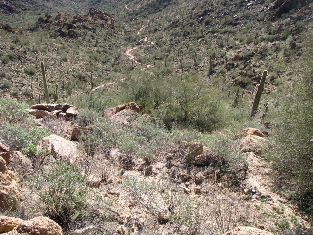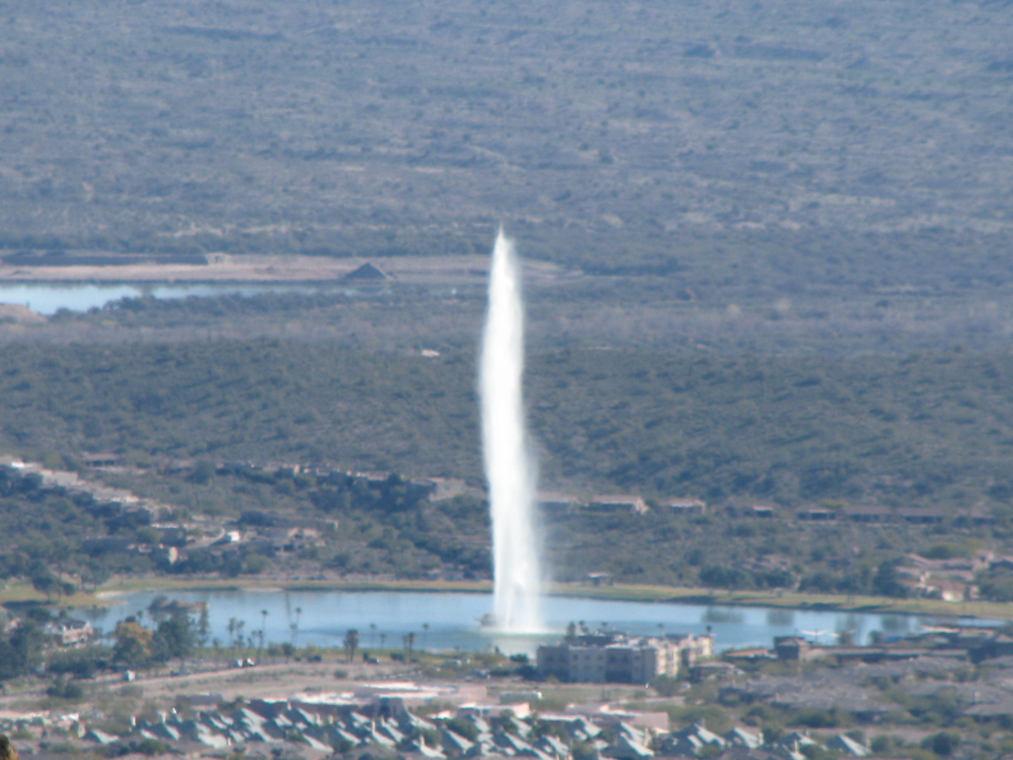 Along the way you get a lot of views of Scottsdale to the south and Fountain hills somewhat more distant in the north. Here’s a llong-zoom shot from about 5 miles away of the famous fountain from which the city gets its name. The fountain rises some 250 feet skyward, and is billed as the 2nd tallest fountain in the world.