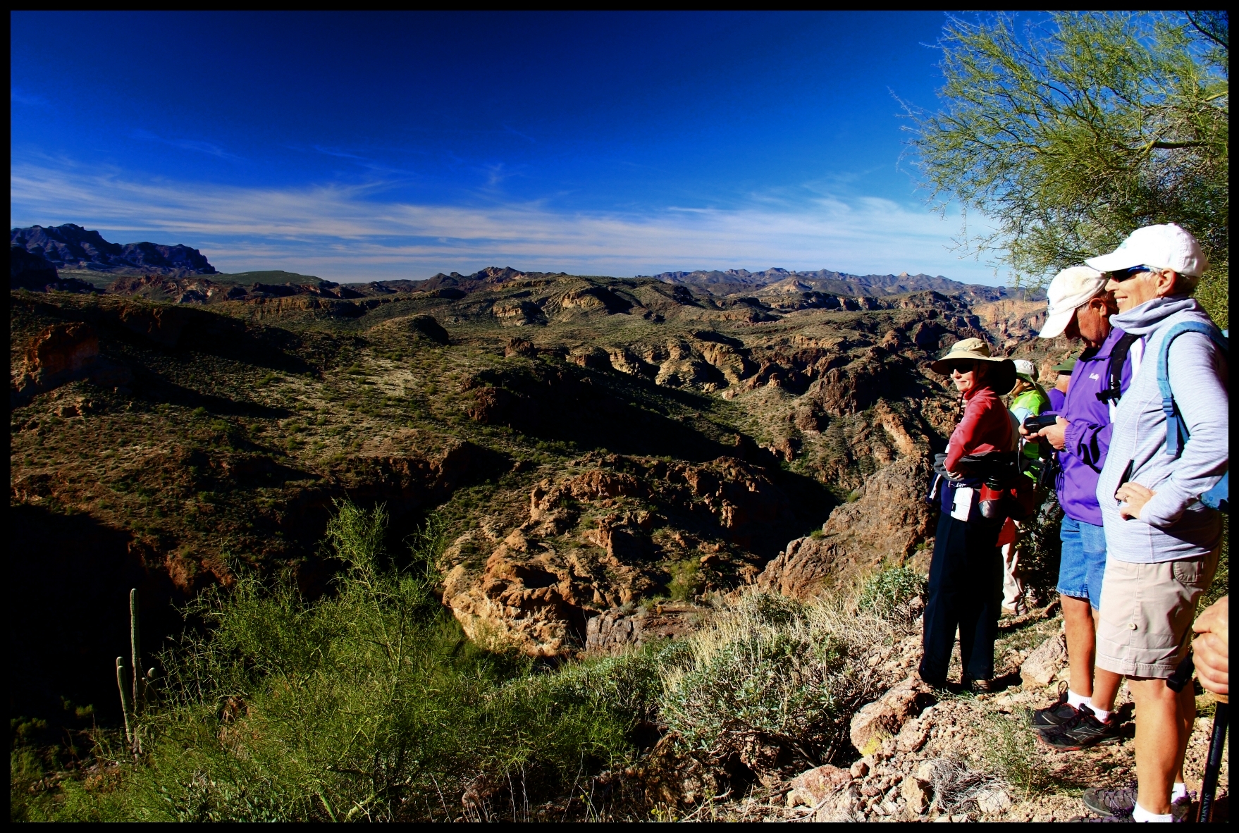 Wednesday the group did three hikes. A few (nut cases) headed south to the challenge of climbing Picacho Peak, and the rest of us headed up the Apache Trail past Tortilla Flat to Forest Route 80 and the “trailhead” above Horse Mesa Dam.