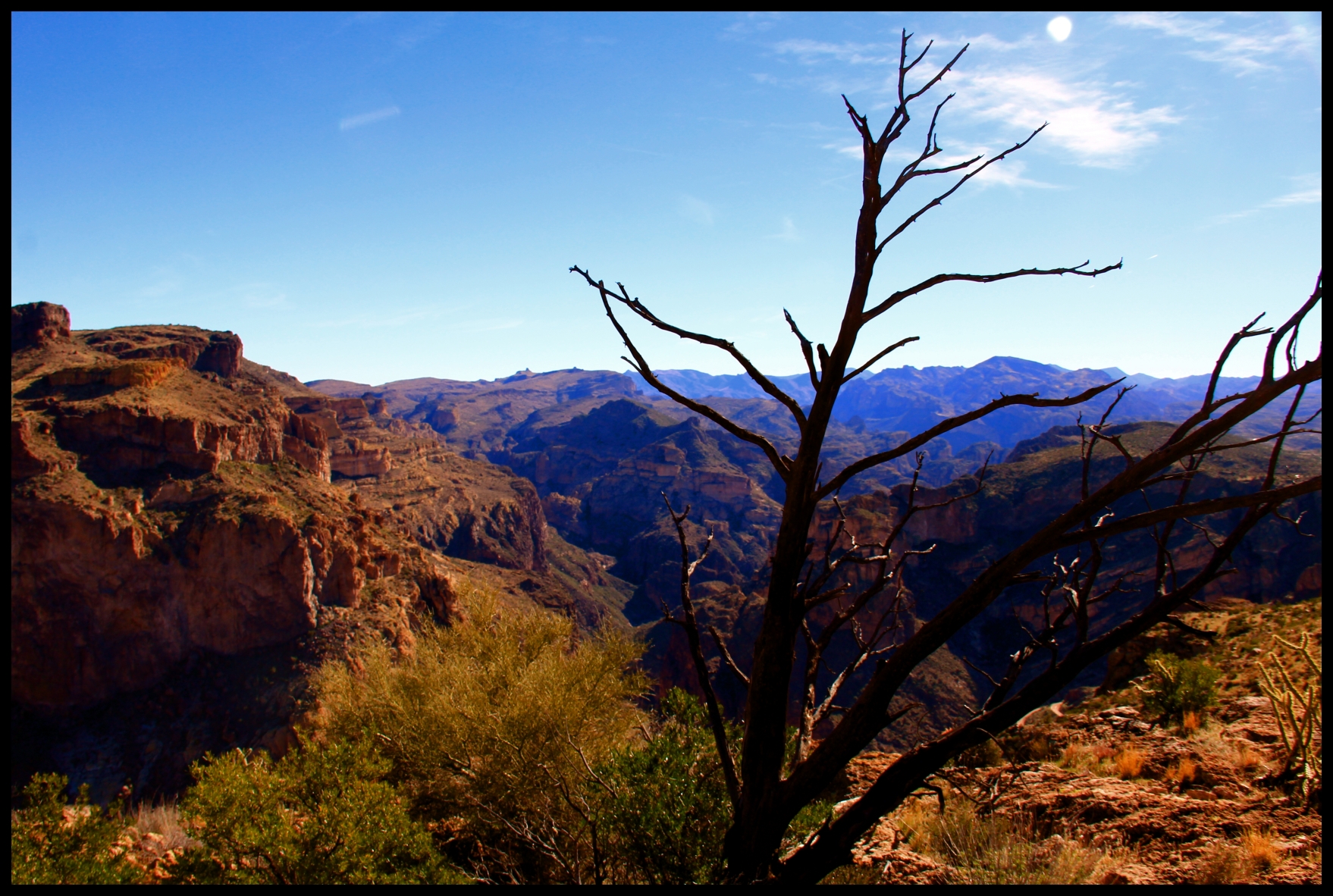 In the scene below the foreground is Fish Creek Canyon at the point that it enters the Salt River Canyon. This is where our “downhill hike” companions will lunch and turn back to the cars.