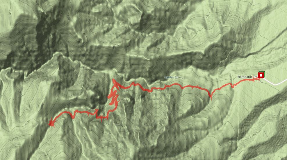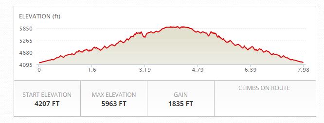 Depending on whose GPS you believed (we had three) the total (in and out) hike was either 6.0, 7.35, or 7.98 miles. Since I’m writing this report, I declare that we hiked 7.98 miles.
