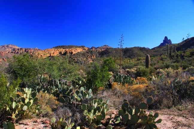 Wednesday the group did three hikes. A few (nut cases) headed south to the challenge of climbing Picacho Peak, and the rest of us headed up the Apache Trail past Tortilla Flat to Forest Route 80 and the “trailhead” above Horse Mesa Dam.